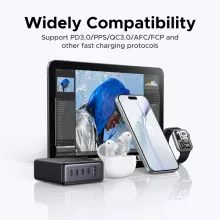 This isn’t just another charger—it’s a desktop charging station built to keep all your devices ready to go. Thanks to GaN (Gallium Nitride) technology, it delivers higher efficiency in a smaller package, meaning less heat and more power where you need it. Whether you’re working at your desk, relaxing at home, or traveling light, it’s the perfect companion for modern, multi-device lifestyles.