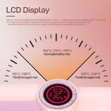 - Fast Heating: Reaches temperatures between 100°C and 230°C (212°F to 446°F) in less than a minute, allowing you to style your hair quickly and efficiently.