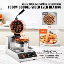Start your mornings with mouthwatering waffles made effortlessly by this high-power commercial round waffle maker. Designed to create 1-inch thick waffles that are crispy on the outside and fluffy on the inside, this waffle iron transforms breakfast into a delightful experience. With a powerful 1300-watt heating system, you get evenly baked waffles in just 3 to 5 minutes—perfect for busy households, brunch gatherings, or small cafes.