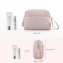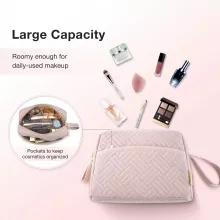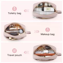 Unlike ordinary makeup pouches, this one blends practicality with elegance. Its waterproof build ensures durability, while the satin-lined interior offers a soft, luxurious feel. The thoughtful design means no more lost lipsticks or messy brushes – every item has its place. From a quick overnight stay to a long vacation, it’s your go-to companion for looking and feeling your best.