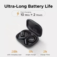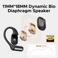- Open-ear ergonomic fit with secure ear hooks for all-day wear