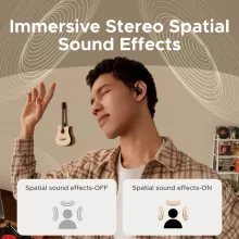 Crafted with a lightweight metal and soft silicone frame, these true wireless earbuds sit comfortably around your ears without pressure or slipping. With Bluetooth 6.0 technology and a stable 49-foot transmission range, you’ll enjoy smooth connectivity and instant pairing with your devices. Thanks to dynamic drivers and support for AAC/SBC codecs, your music sounds richer, vocals clearer, and bass deeper—all in real-time spatial audio for a 3D soundstage that moves with you.