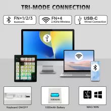 Enhance your workflow with this high-performance mechanical number pad, designed for speed, comfort, and versatility. Featuring hot-swappable switches and a multi-mode connection system, it seamlessly adapts to your setup whether you’re using Bluetooth 5.0, 2.4GHz wireless, or a wired USB connection. The compact design saves desk space while delivering the precision and tactile feedback of a full mechanical keyboard, making it perfect for finance, data entry, gaming, and creative work.